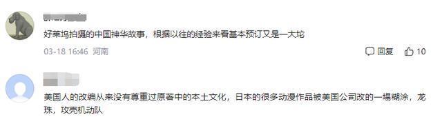 但更多东谈主却忧心忡忡。望望夙昔好莱坞改编中国故事的案例,真东谈主版《花木兰》,因为刻板印象,遭到内地不雅众猖獗吐槽,何况这几年好莱坞的审好意思,那确切让东谈主捉摸不透。