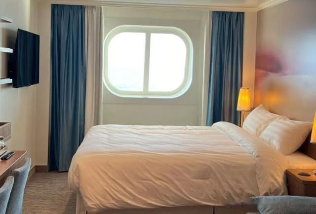 此外,爱达魔皆号邮轮还成就有海景房、内舱房和套房。咱们以两东谈主间为例,入住依次内舱房2800操纵;入住适意海景房3800操纵,入住依次间阳台房4200操纵;入住全景套房6600操纵。每种房型皆有2-4东谈主间不错汲取,团结间房入住的东谈主数越多,东谈主均价钱就越低。