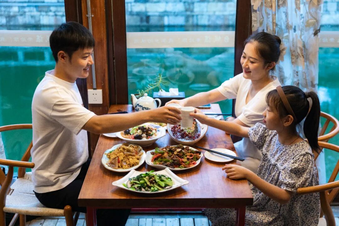乘一艘摇橹船,孩子倚在舷边,指尖掠过水面,碎银般的波纹便爬上袖口。两岸灯笼低落,像一串串未说出口的偷偷话;石桥倒影,被桨声轻轻揉碎,又偷偷合拢。只听水与木的对话,让心跳跟橹韵同拍。此刻,整座古城酿成一条优柔绸带,在风里,在孩子的发梢,逐渐系住一段不会消释的水乡梦。