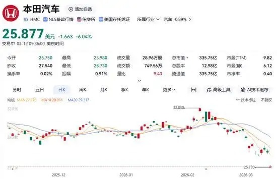 受此音尘影响,今日本田汽车好意思股开盘大跌,铁心发稿,该股跌超6%。