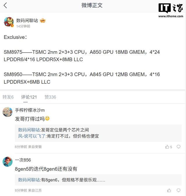 IT之家 3 月 25 日音尘,高通下一代骁龙 8 至尊版旗舰不息器的信息曝光,博主 @数码闲聊站 本日爆料了 SM8950 和 SM8975两个版块的竖立: